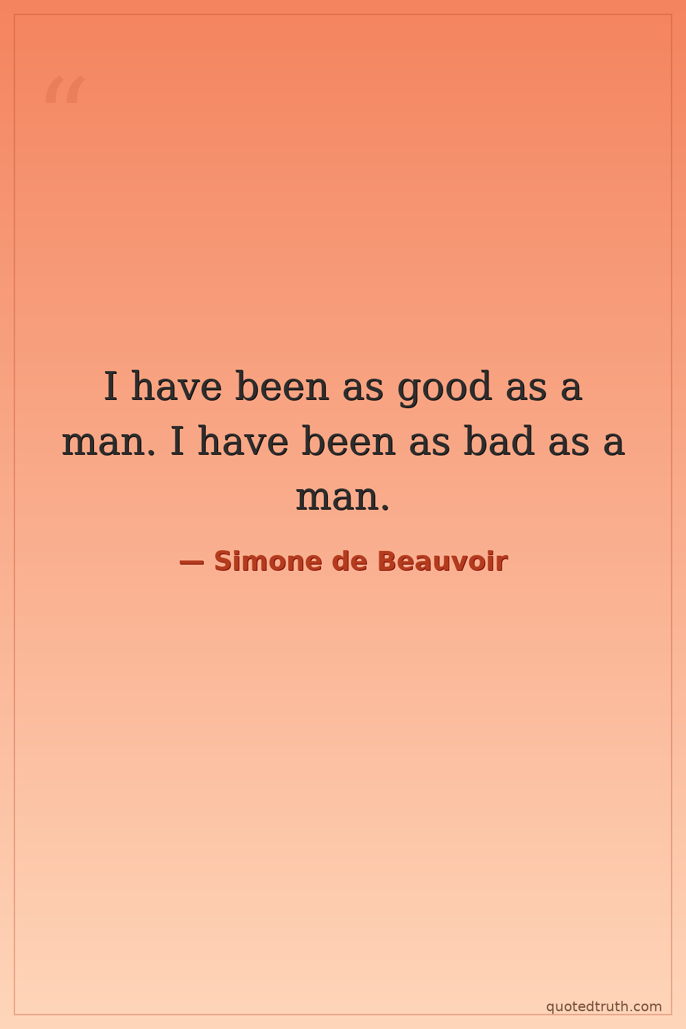 I have been as good as a man. I have been as bad as a man.