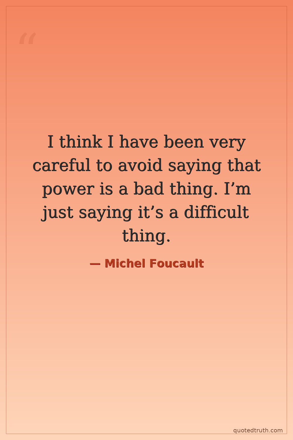 I think I have been very careful to avoid saying that power is a bad thing. I’m just saying it’s a difficult thing.