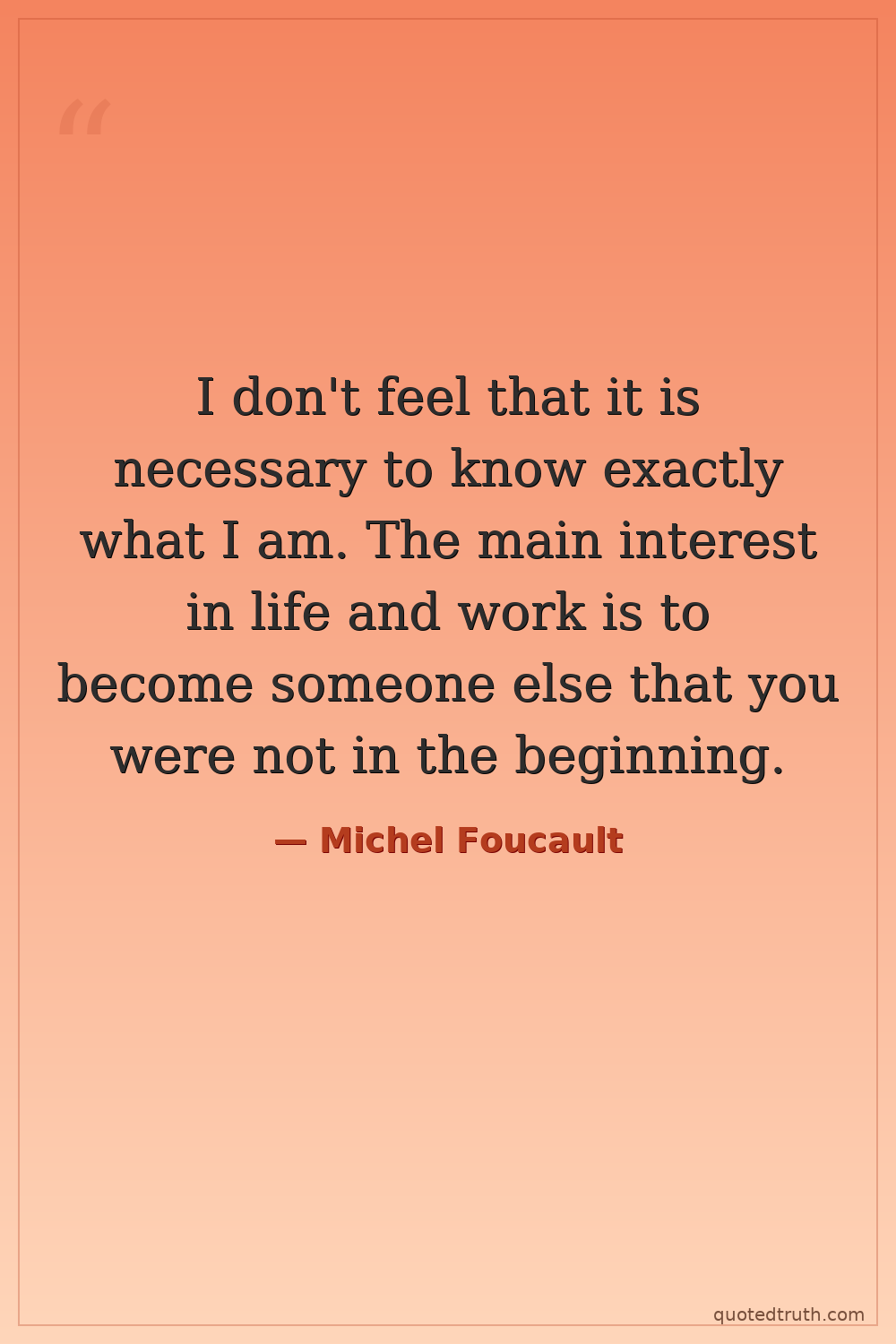 I don't feel that it is necessary to know exactly what I am. The main interest in life and work is to become someone else that you were not in the beginning.