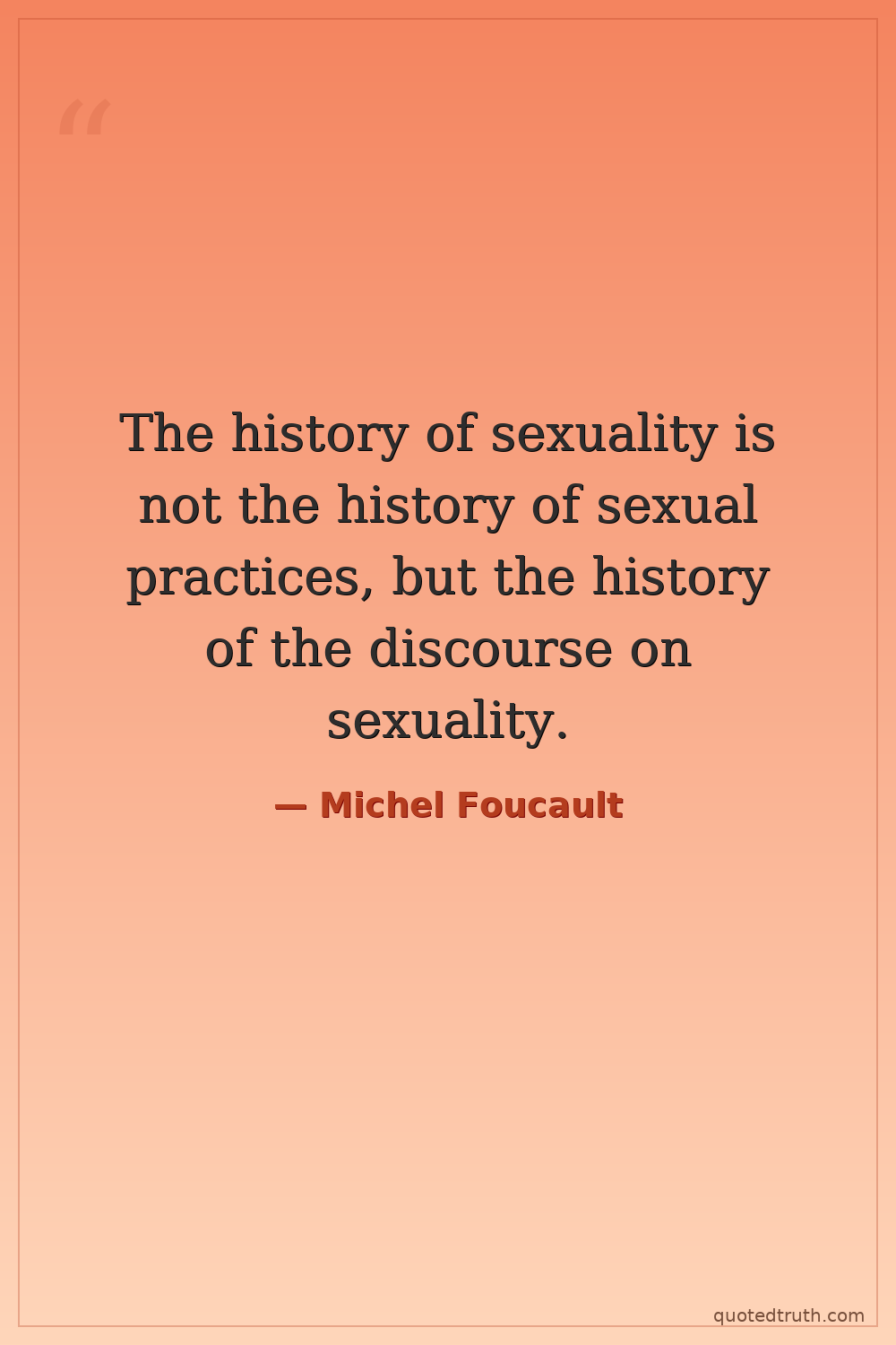 The history of sexuality is not the history of sexual practices, but the history of the discourse on sexuality.