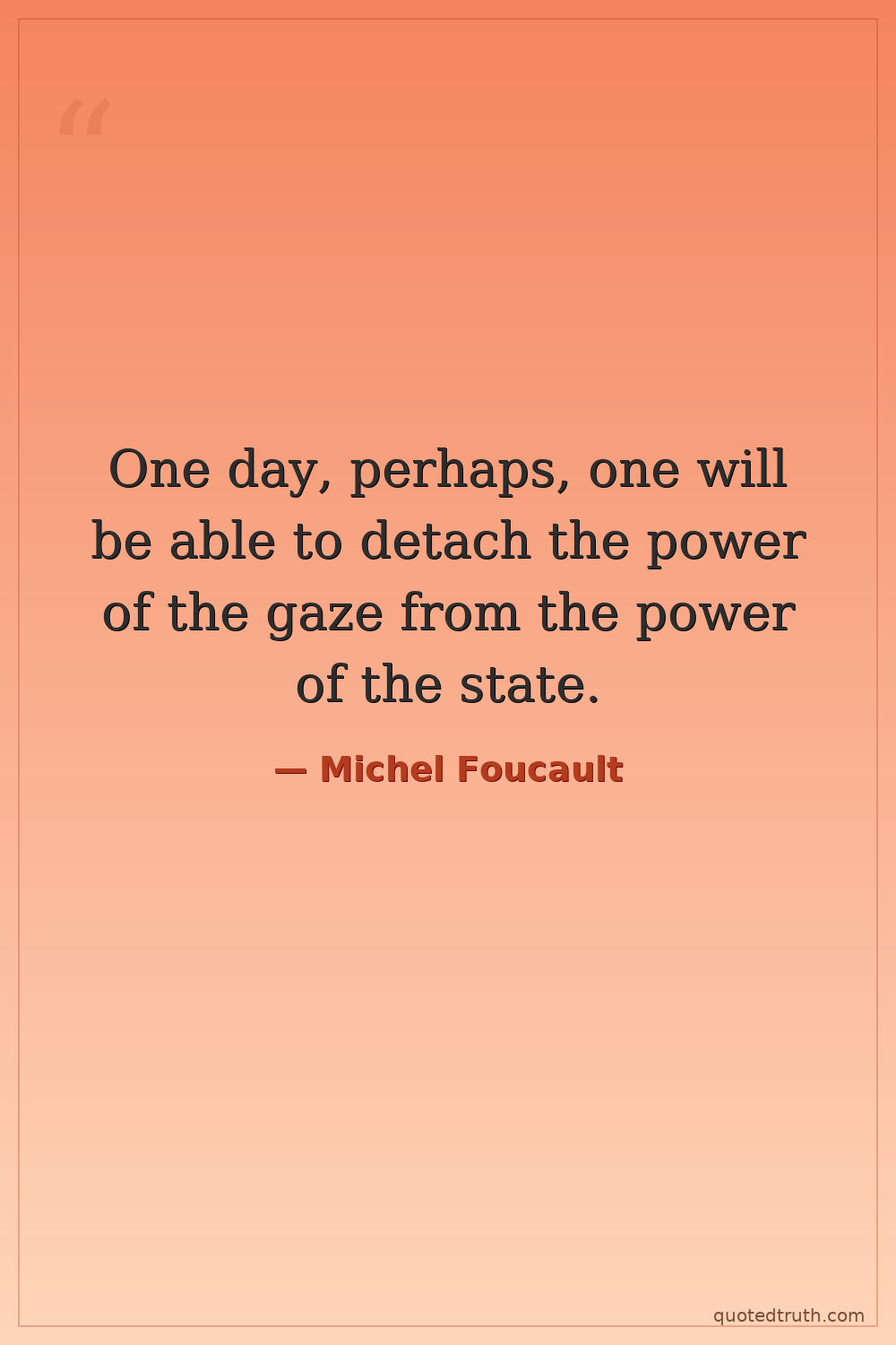 One day, perhaps, one will be able to detach the power of the gaze from the power of the state.