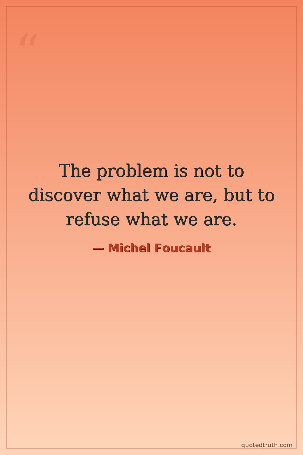 The problem is not to discover what we are, but to refuse what we are.
