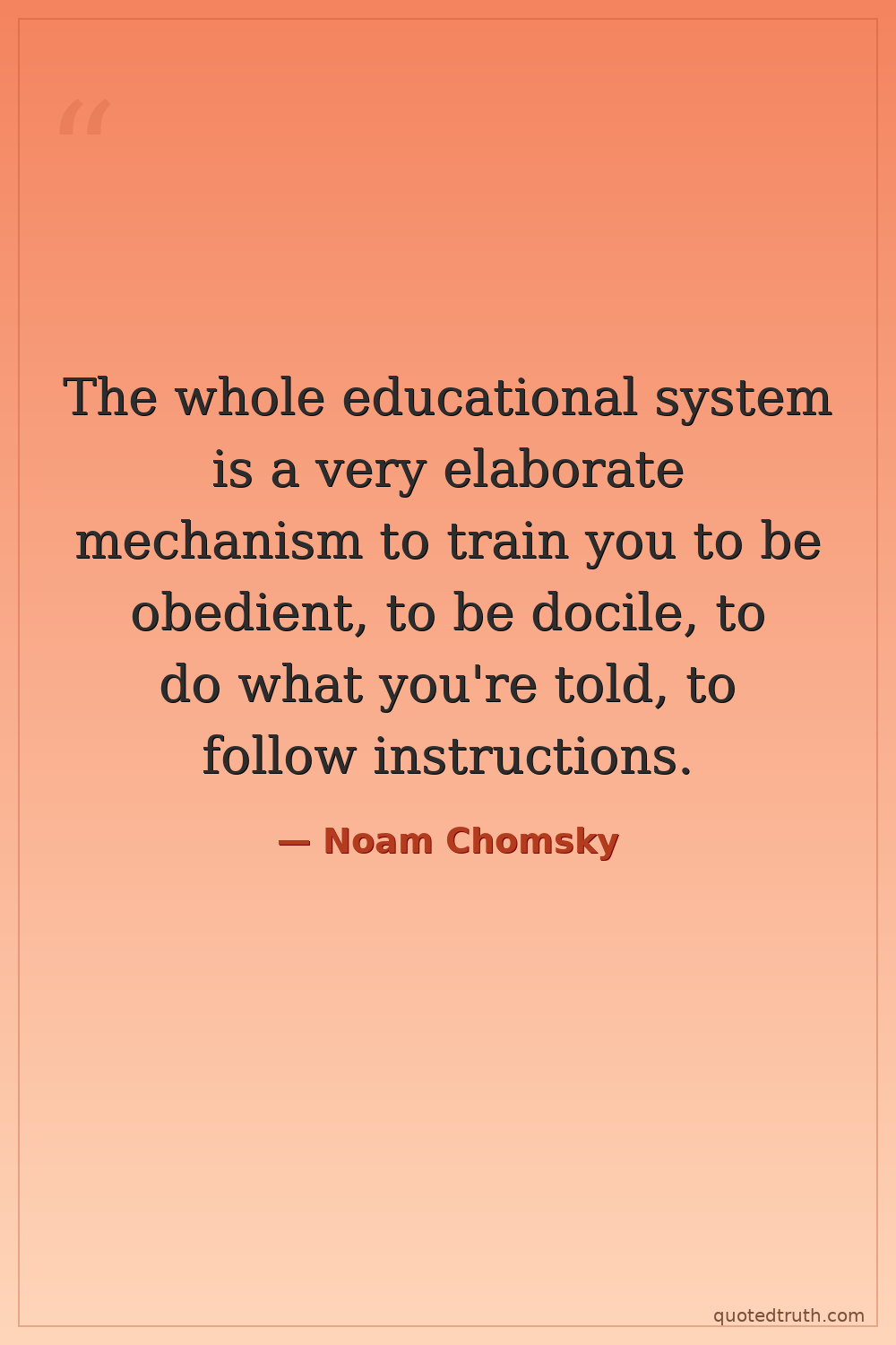 The whole educational system is a very elaborate mechanism to train you to be obedient, to be docile, to do what you're told, to follow instructions.
