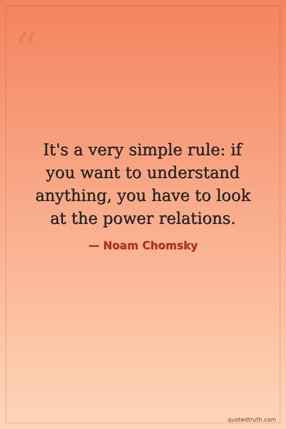 It's a very simple rule: if you want to understand anything, you have to look at the power relations.