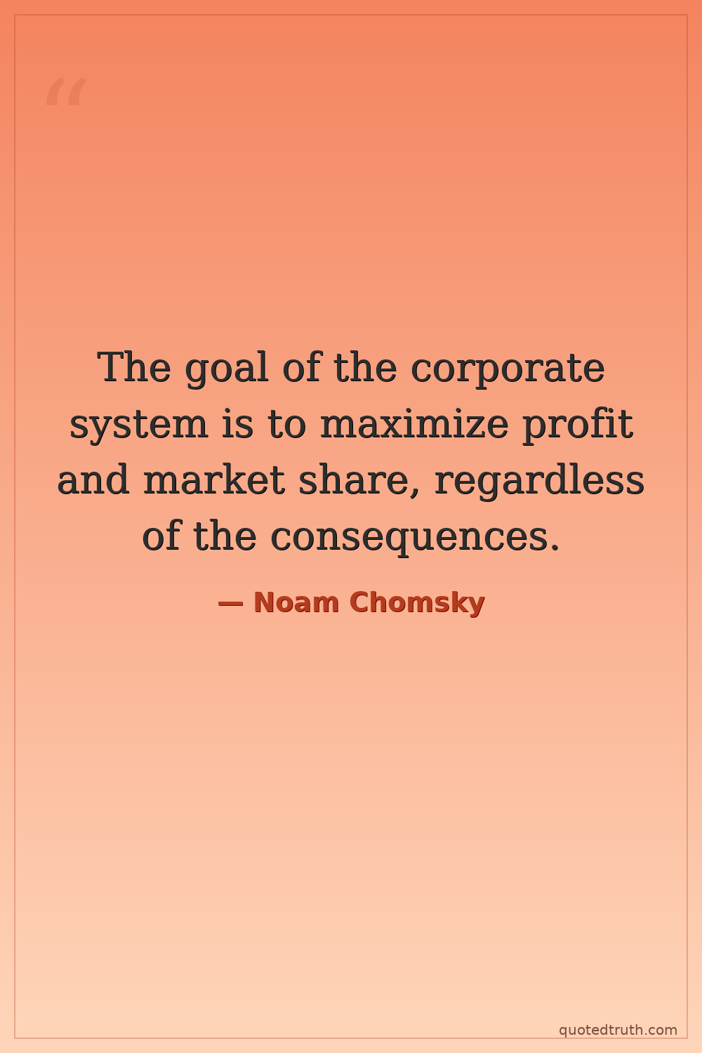 The goal of the corporate system is to maximize profit and market share, regardless of the consequences.