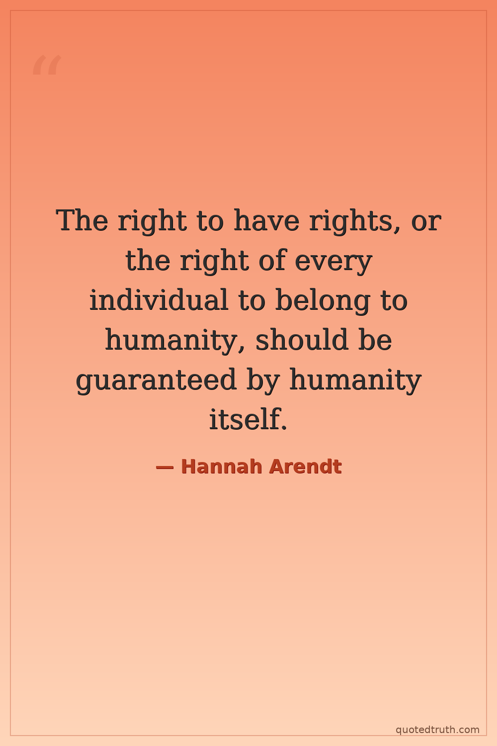 The right to have rights, or the right of every individual to belong to humanity, should be guaranteed by humanity itself.
