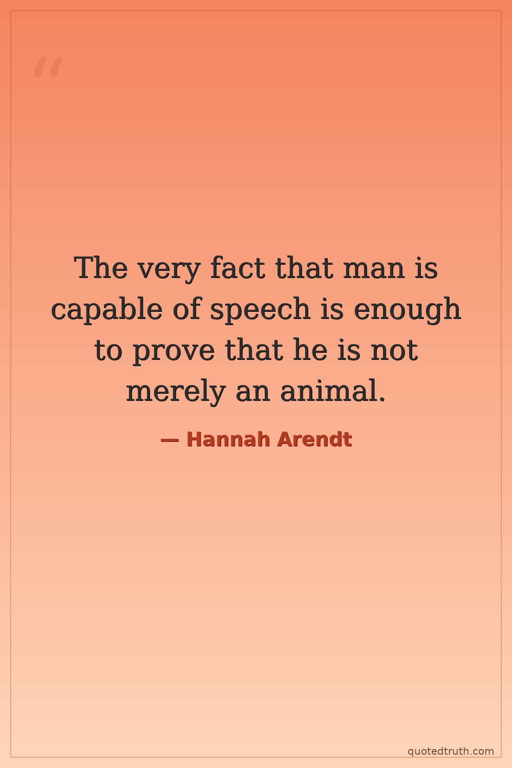 The very fact that man is capable of speech is enough to prove that he is not merely an animal.