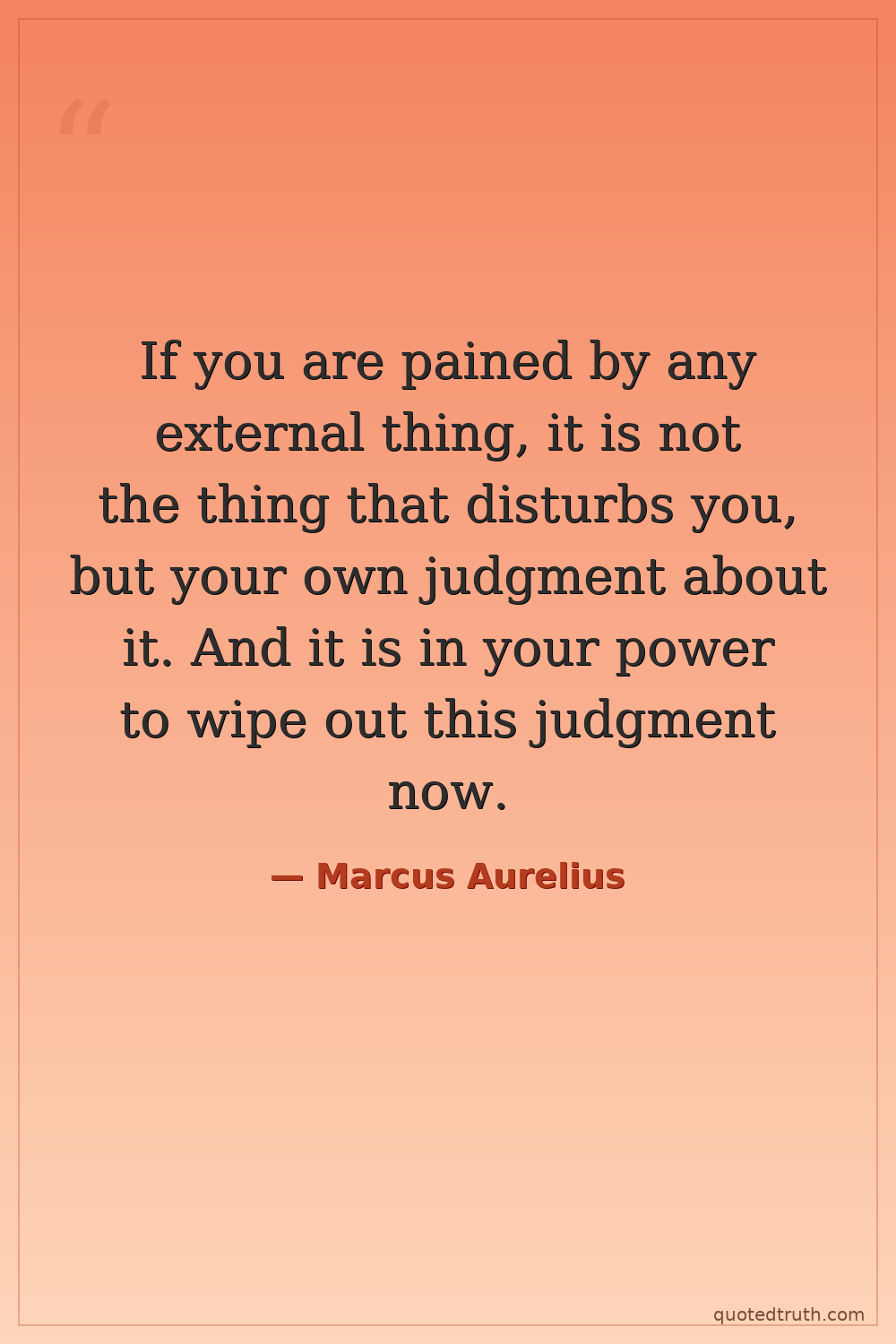 If you are pained by any external thing, it is not the thing that disturbs you, but your own judgment about it. And it is in your power to wipe out this judgment now.