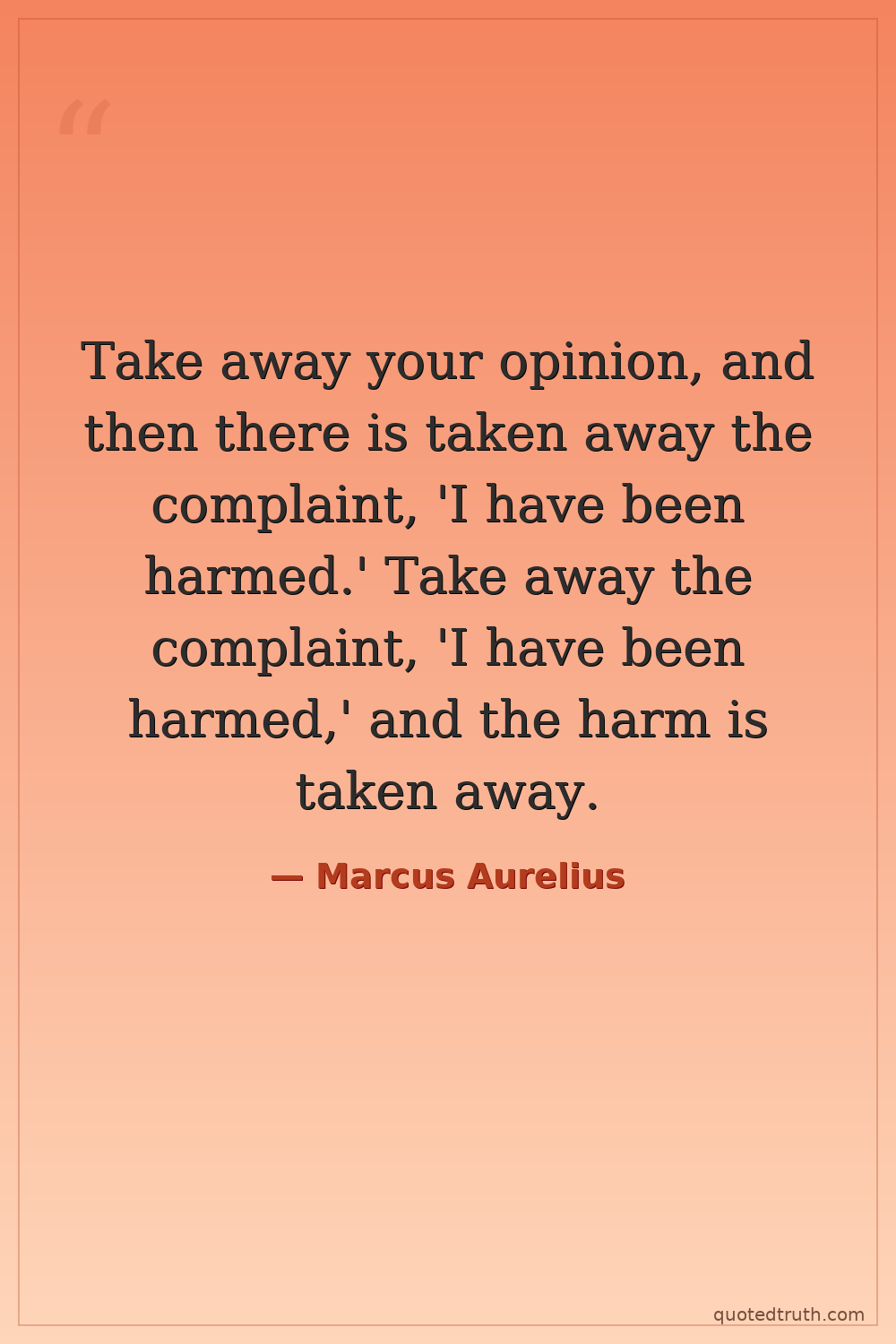 Take away your opinion, and then there is taken away the complaint, 'I have been harmed.' Take away the complaint, 'I have been harmed,' and the harm is taken away.