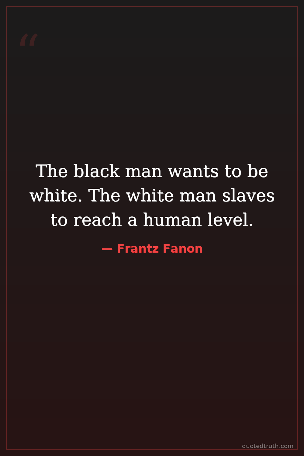 The black man wants to be white. The white man slaves to reach a human level.