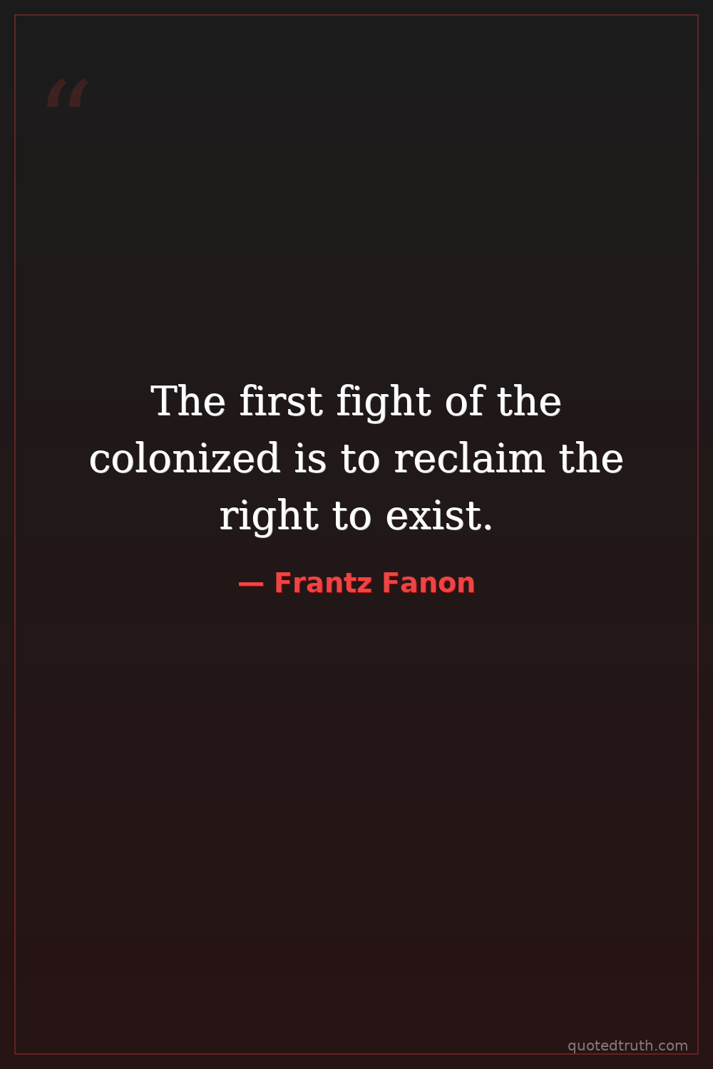 The first fight of the colonized is to reclaim the right to exist.