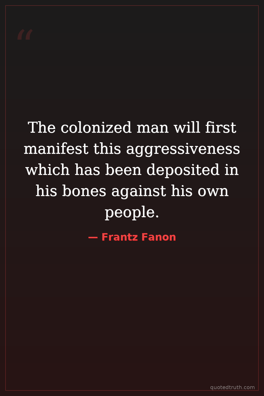 The colonized man will first manifest this aggressiveness which has been deposited in his bones against his own people.