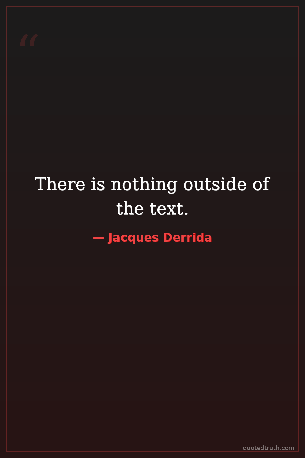 Controversial"What is called 'objectivity,' scientificity, etc., is the price paid for the effacement of the subject or, what is the same thing, for the effacement of the text's own textual character."