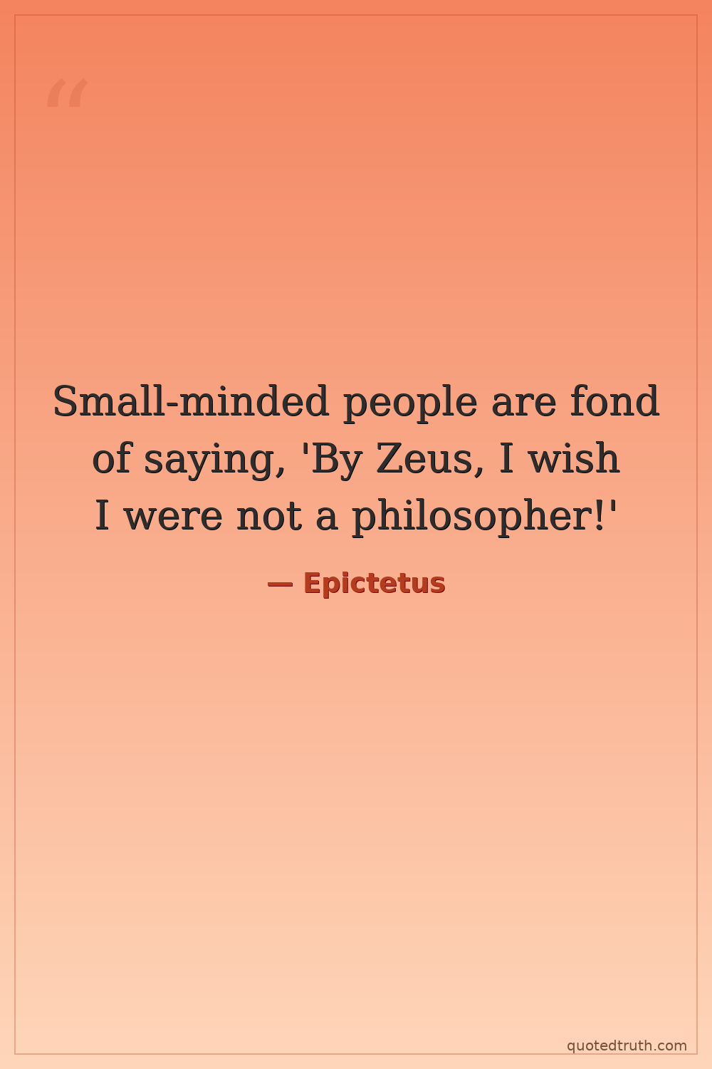 Small-minded people are fond of saying, 'By Zeus, I wish I were not a philosopher!'