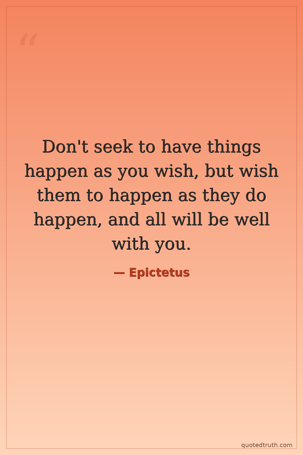 Don't seek to have things happen as you wish, but wish them to happen as they do happen, and all will be well with you.