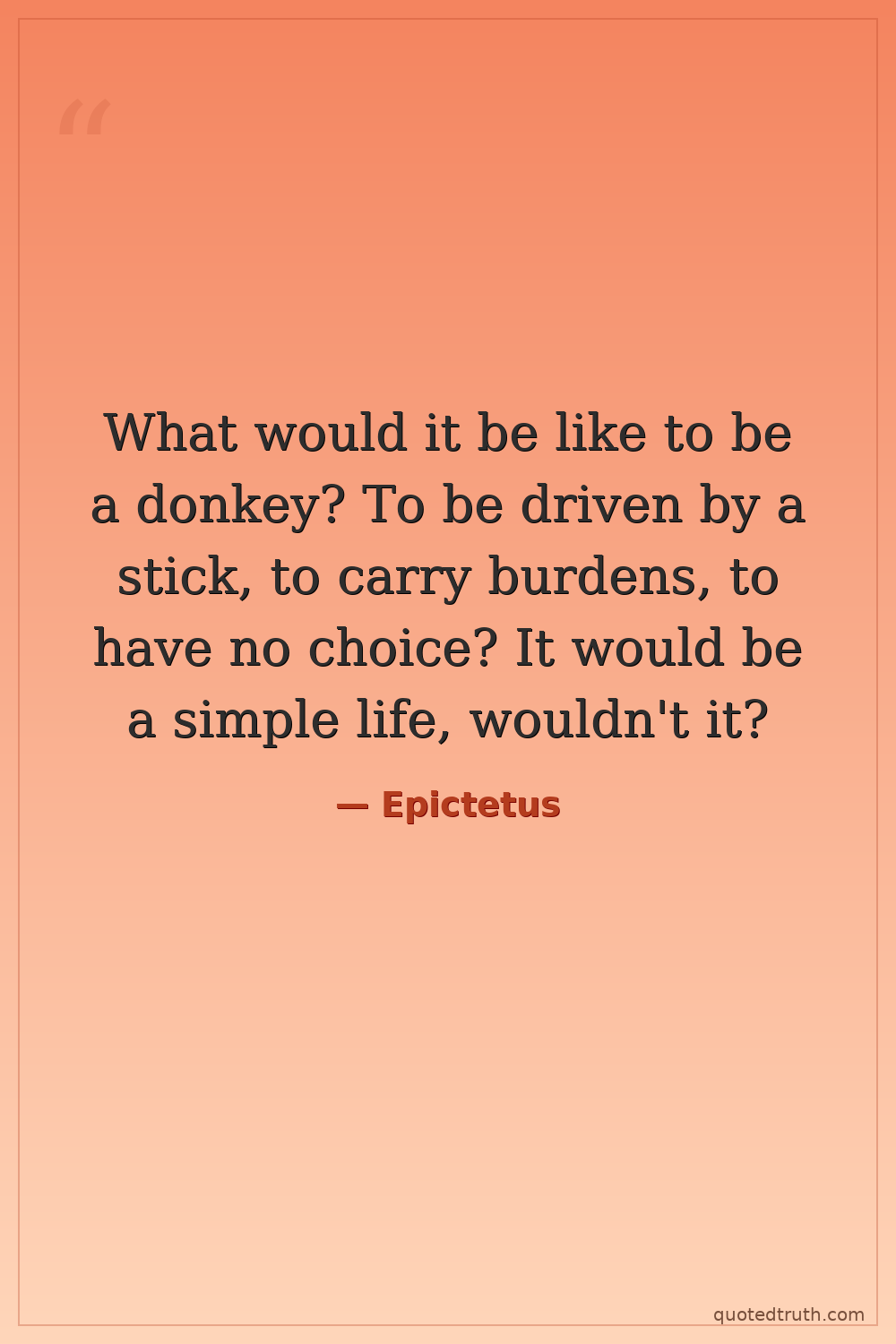 What would it be like to be a donkey? To be driven by a stick, to carry burdens, to have no choice? It would be a simple life, wouldn't it?