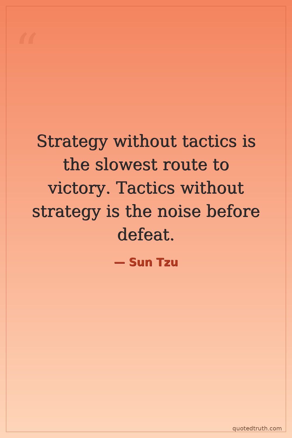 Strategy without tactics is the slowest route to victory. Tactics without strategy is the noise before defeat.