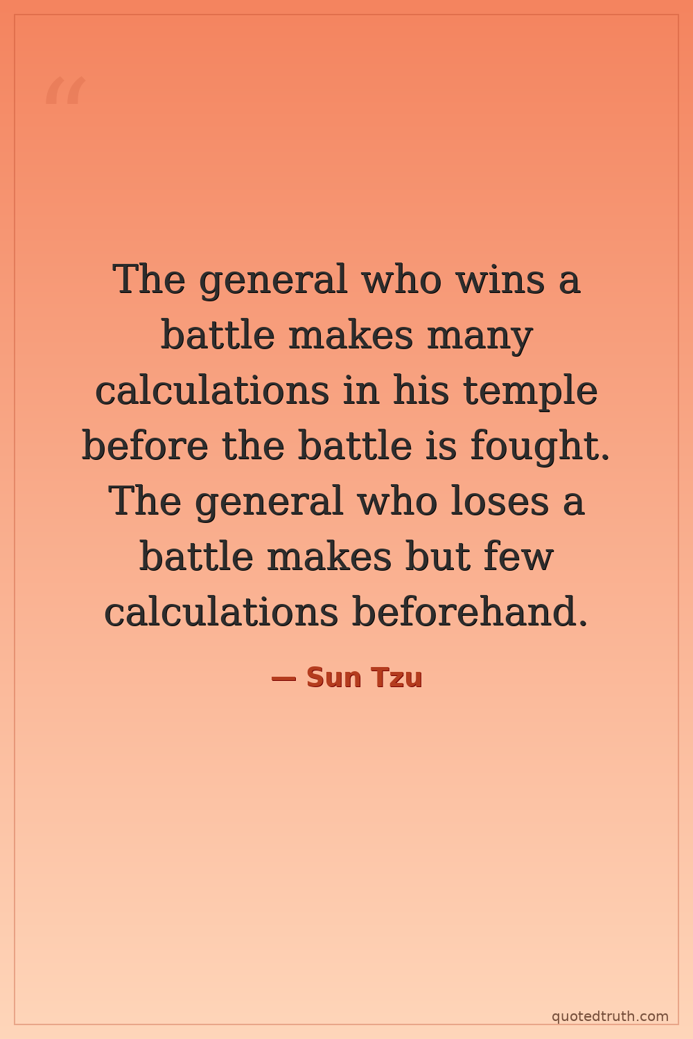 The general who wins a battle makes many calculations in his temple before the battle is fought. The general who loses a battle makes but few calculations beforehand.