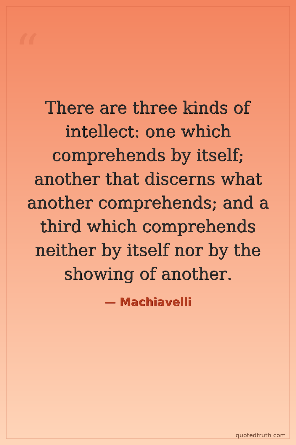 There are three kinds of intellect: one which comprehends by itself; another that discerns what another comprehends; and a third which comprehends neither by itself nor by the showing of another.
