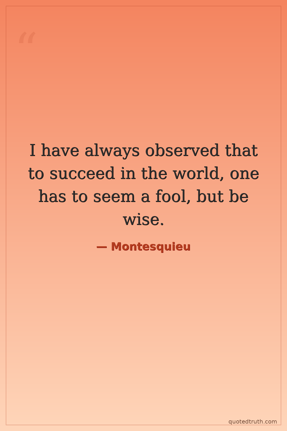 I have always observed that to succeed in the world, one has to seem a fool, but be wise.