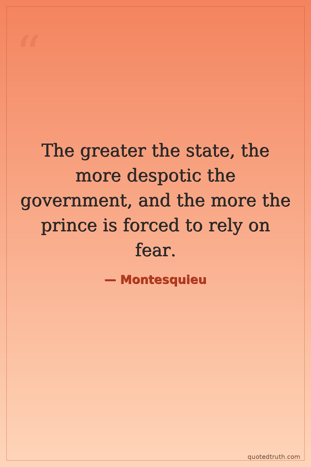 The greater the state, the more despotic the government, and the more the prince is forced to rely on fear.