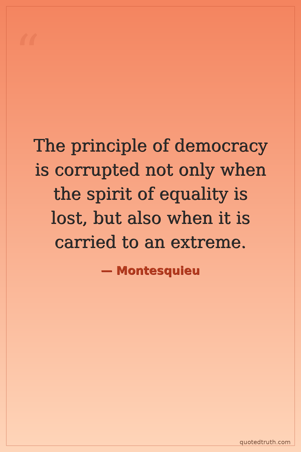 Montesquieu — "The principle of democracy is corrupted not only when the spirit of equality is …"
