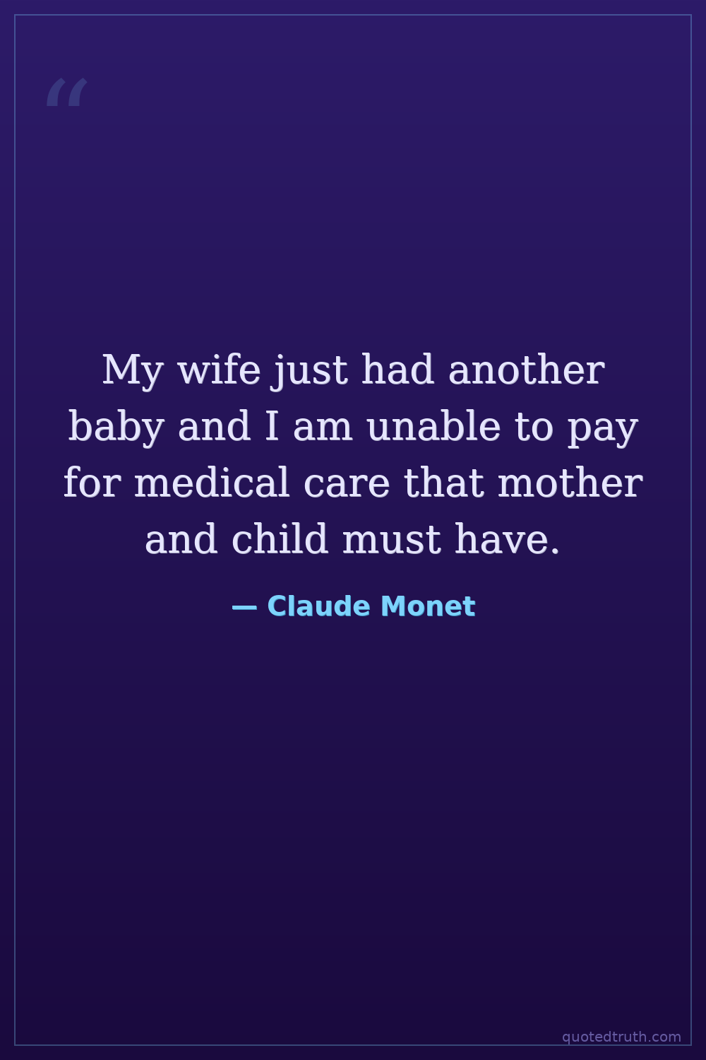 My wife just had another baby and I am unable to pay for medical care that mother and child must have.