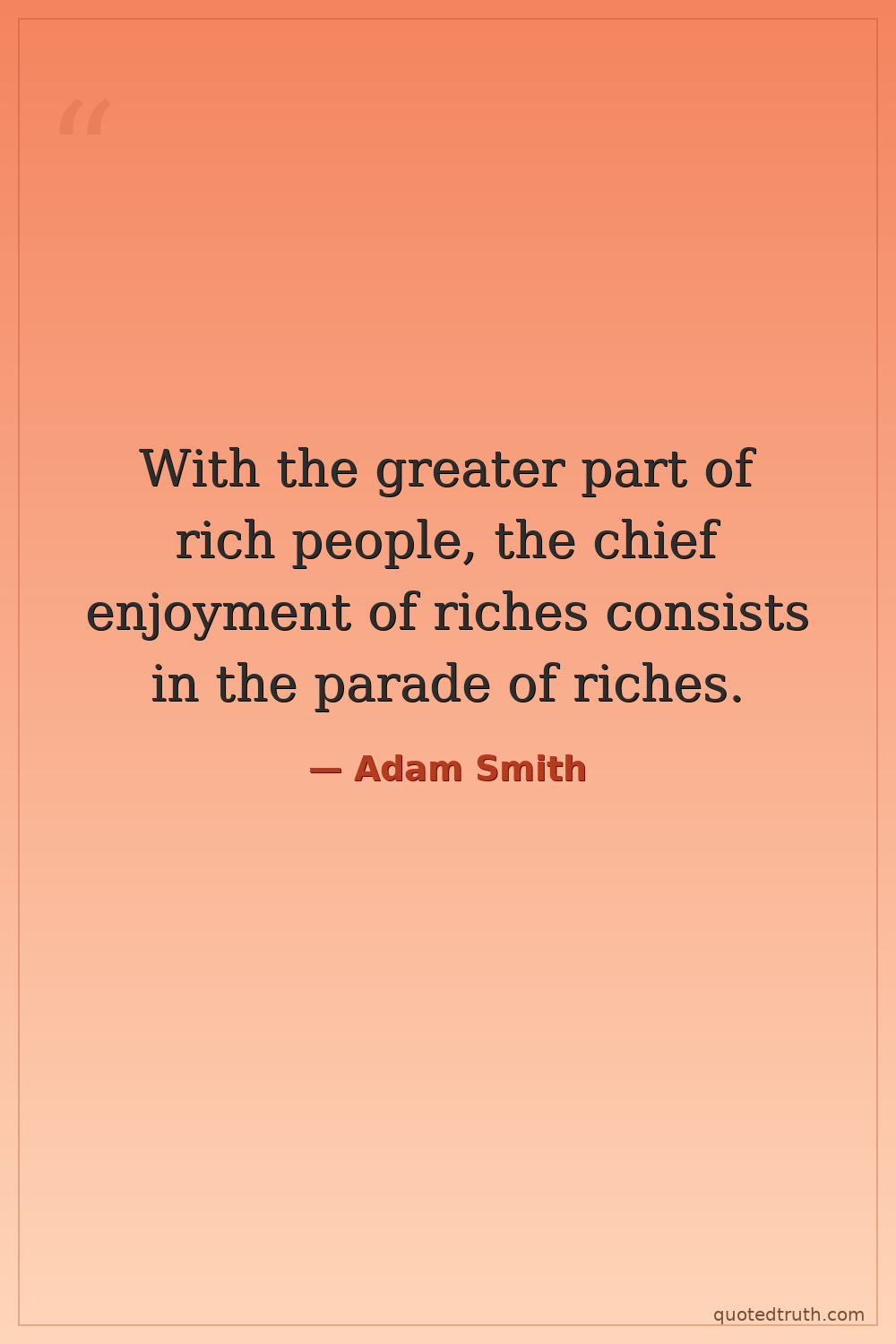 With the greater part of rich people, the chief enjoyment of riches consists in the parade of riches.