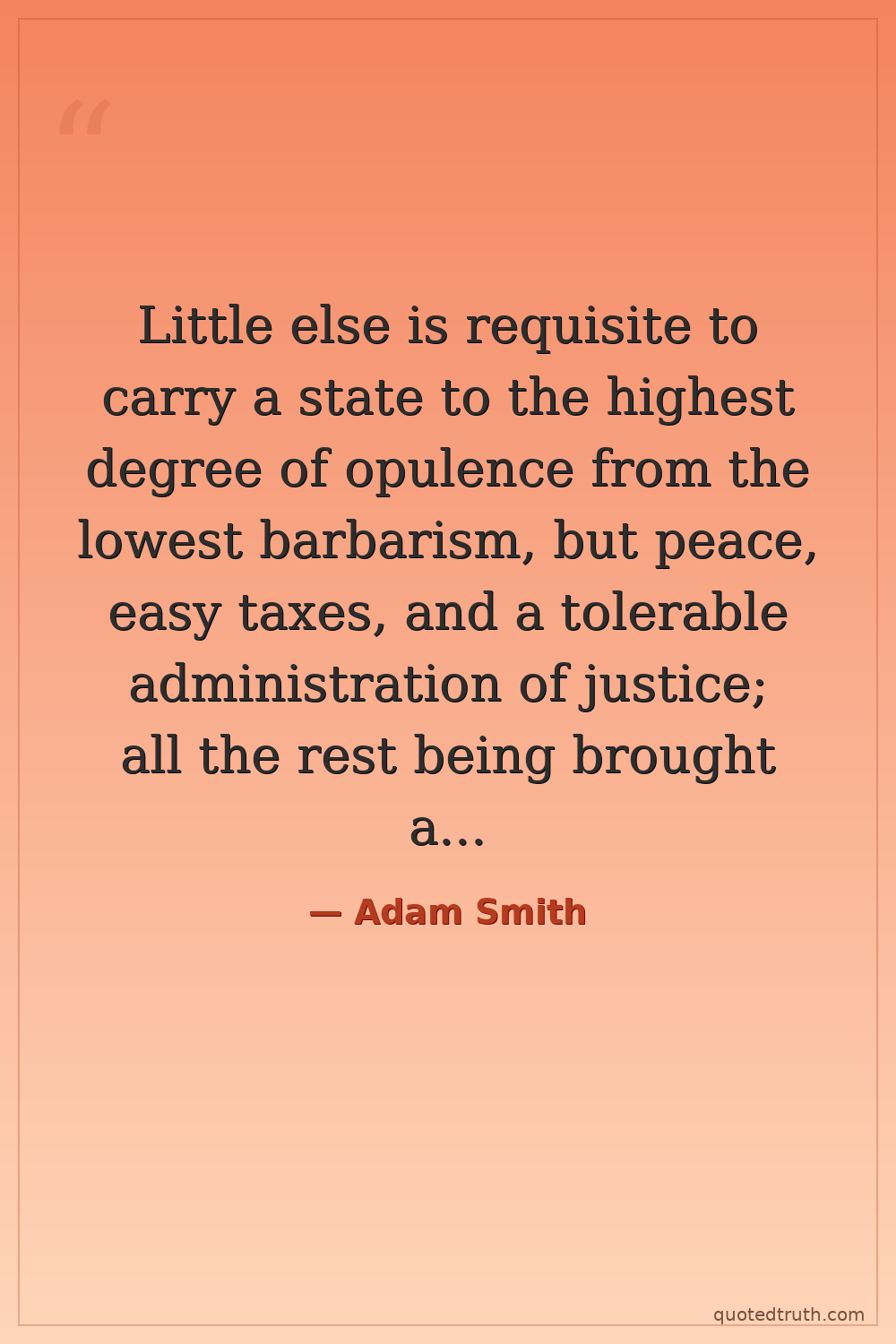 Little else is requisite to carry a state to the highest degree of opulence from the lowest barbarism, but peace, easy taxes, and a tolerable administration of justice; all the rest being brought about by the natural course of things.