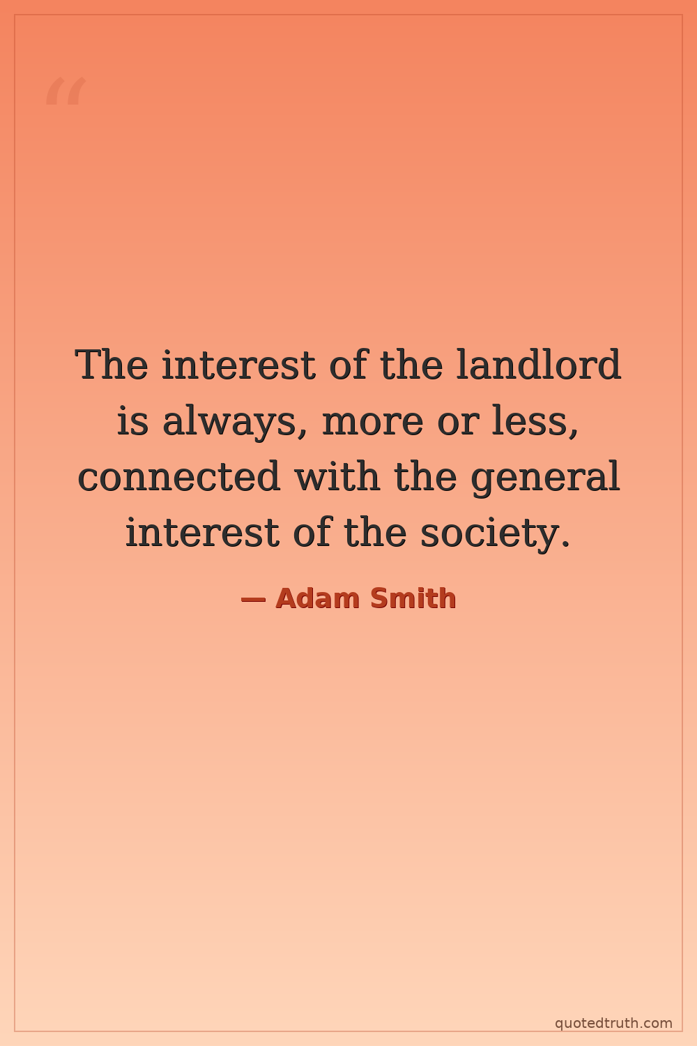 The interest of the landlord is always, more or less, connected with the general interest of the society.