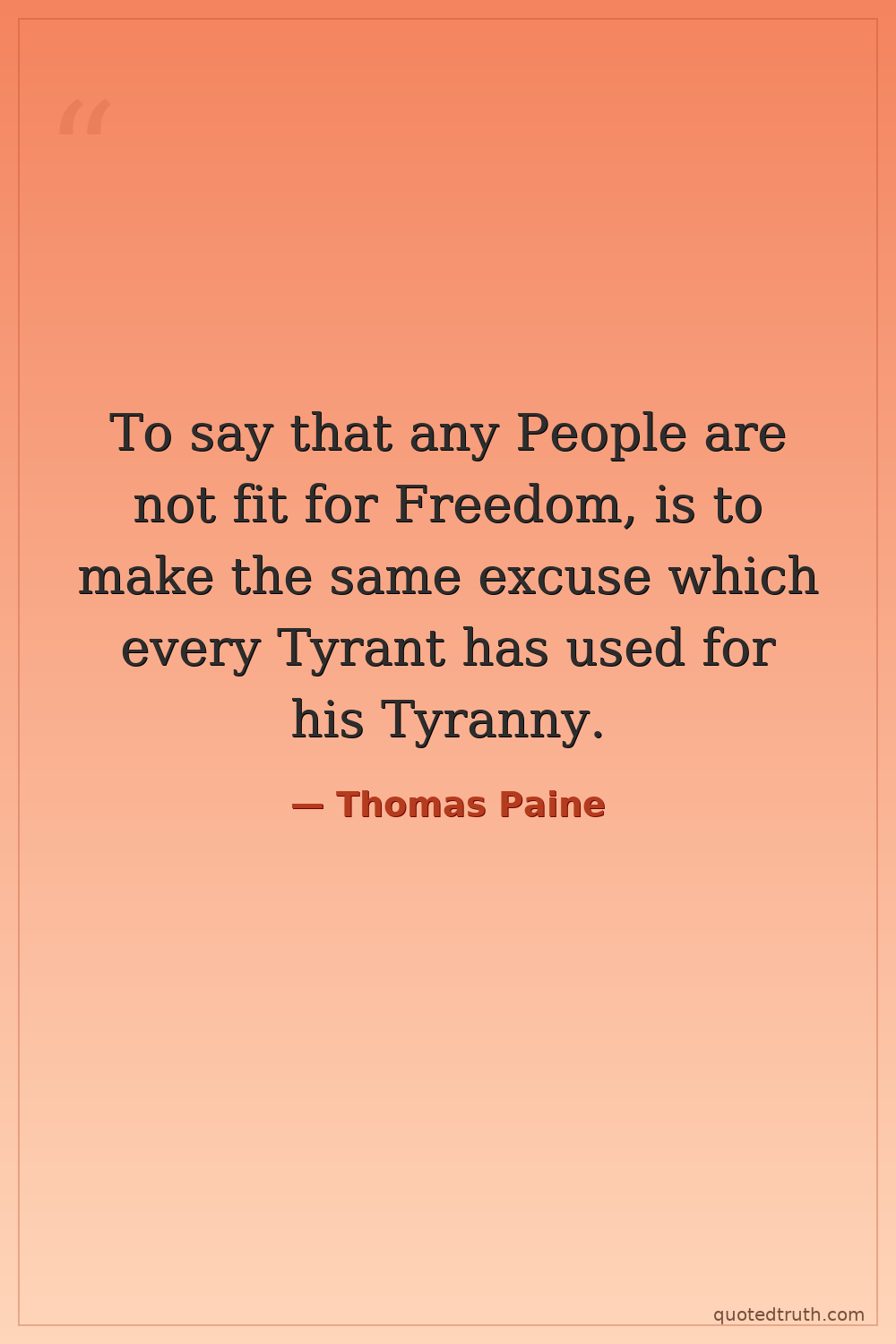 To say that any People are not fit for Freedom, is to make the same excuse which every Tyrant has used for his Tyranny.