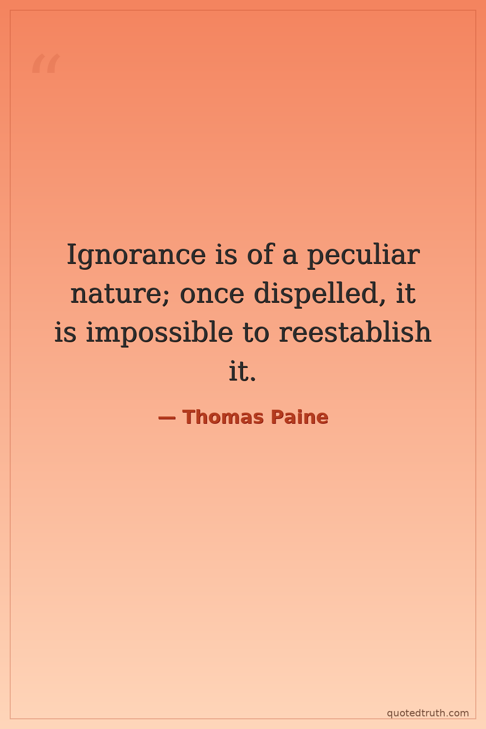Ignorance is of a peculiar nature; once dispelled, it is impossible to reestablish it.