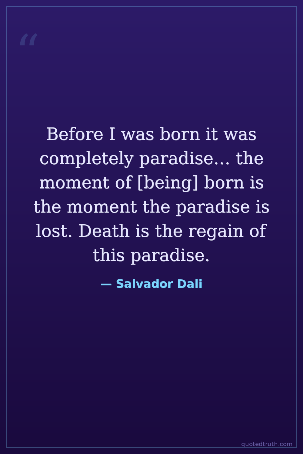Before I was born it was completely paradise… the moment of [being] born is the moment the paradise is lost. Death is the regain of this paradise.