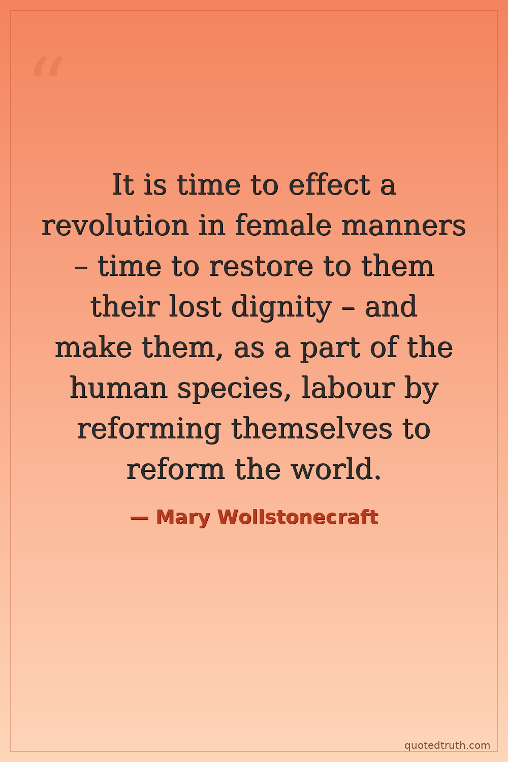 It is time to effect a revolution in female manners – time to restore to them their lost dignity – and make them, as a part of the human species, labour by reforming themselves to reform the world.