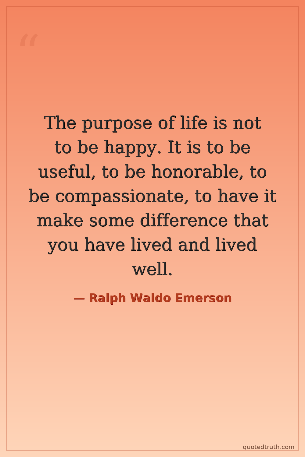 The purpose of life is not to be happy. It is to be useful, to be honorable, to be compassionate, to have it make some difference that you have lived and lived well.