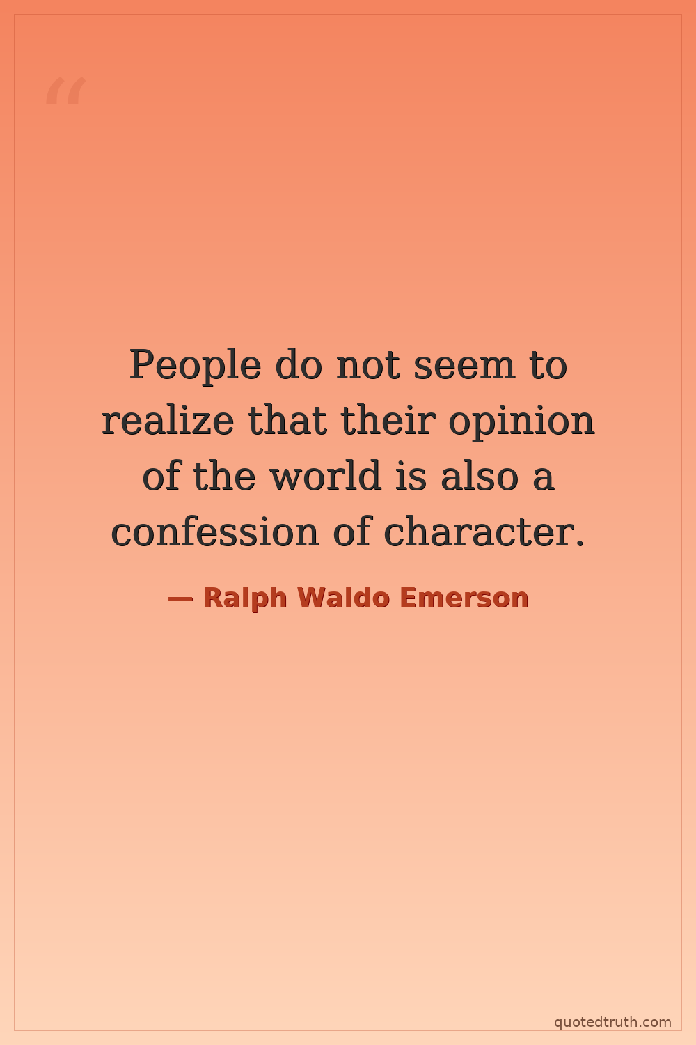 People do not seem to realize that their opinion of the world is also a confession of character.