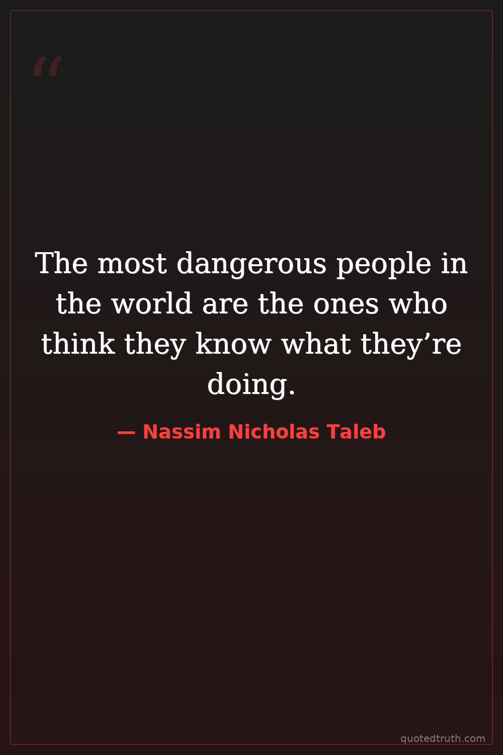 The most dangerous people in the world are the ones who think they know what they’re doing.