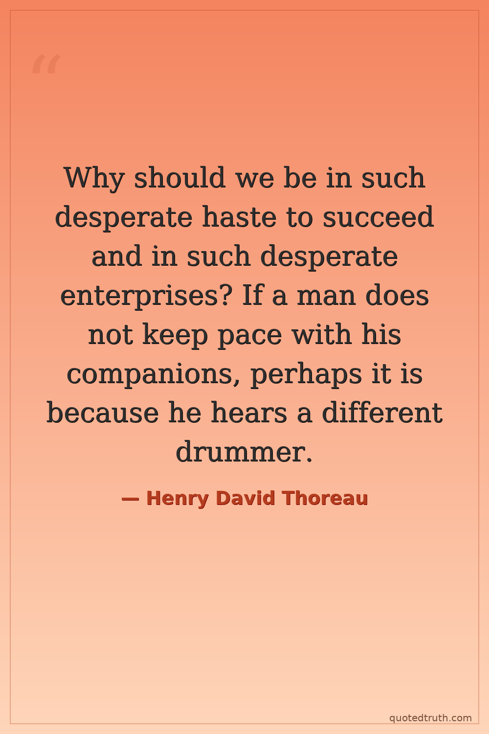 Why should we be in such desperate haste to succeed and in such desperate enterprises? If a man does not keep pace with his companions, perhaps it is because he hears a different drummer.