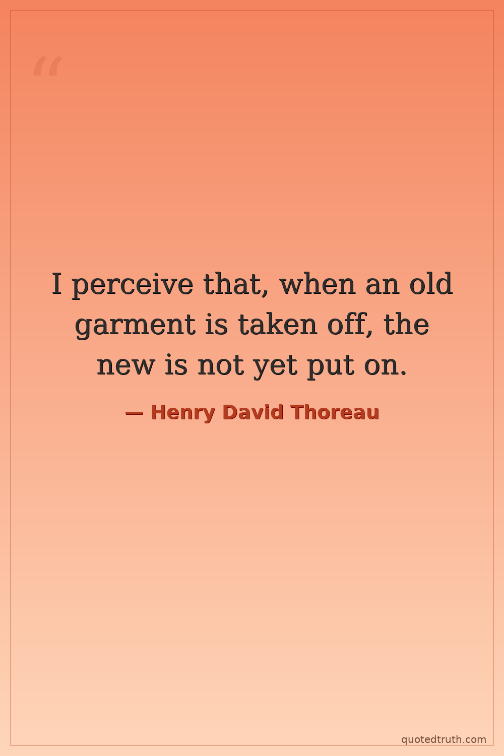 I perceive that, when an old garment is taken off, the new is not yet put on.