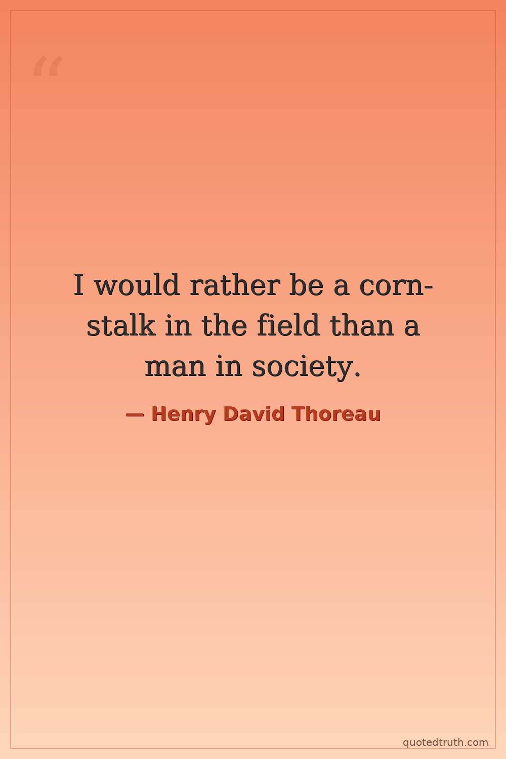 I would rather be a corn-stalk in the field than a man in society.