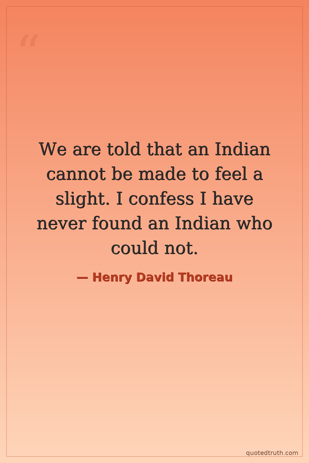 We are told that an Indian cannot be made to feel a slight. I confess I have never found an Indian who could not.