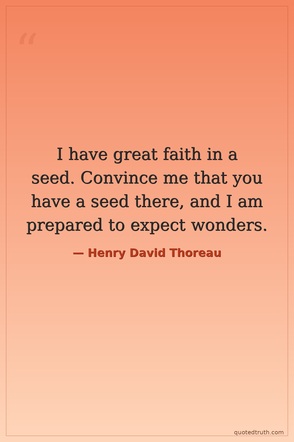 I have great faith in a seed. Convince me that you have a seed there, and I am prepared to expect wonders.