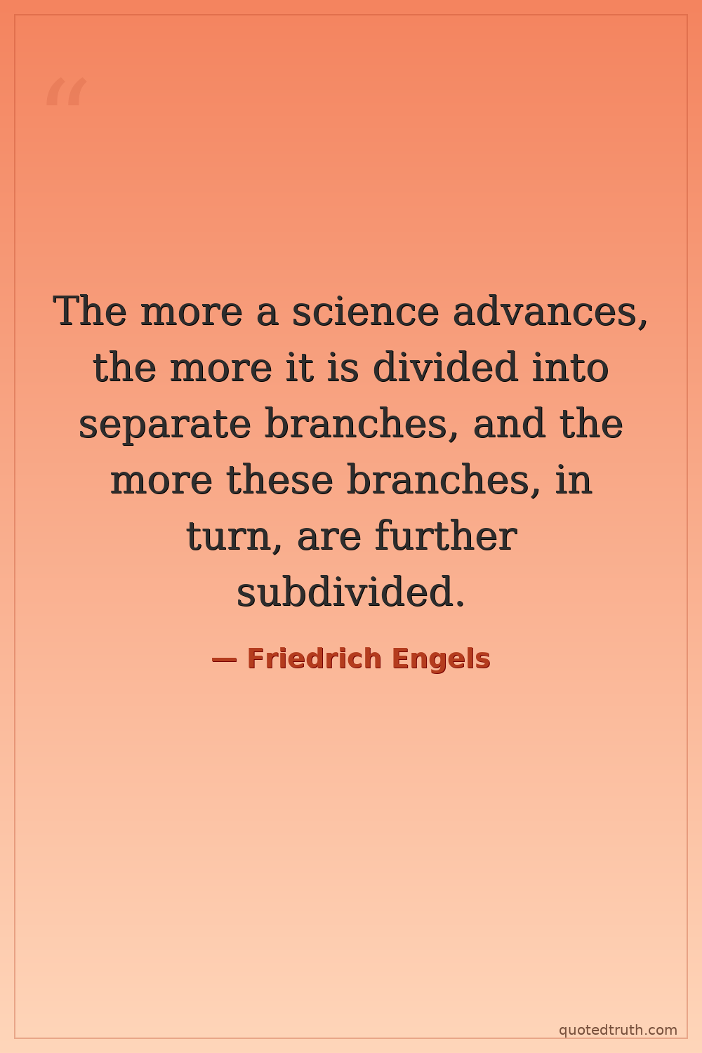 The more a science advances, the more it is divided into separate branches, and the more these branches, in turn, are further subdivided.