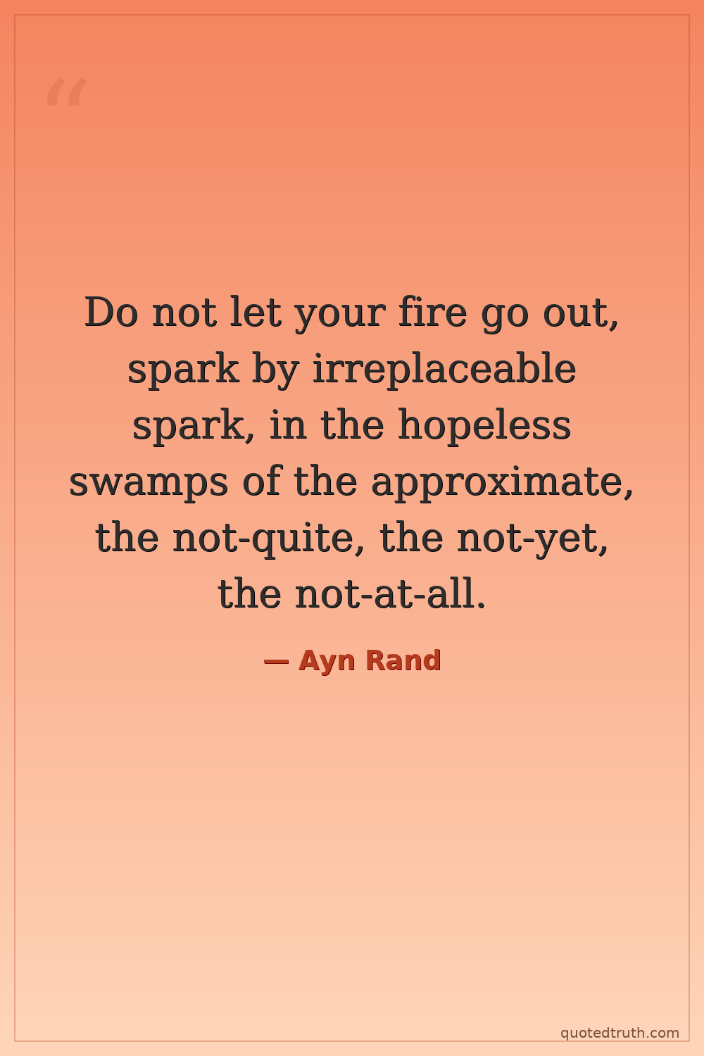 Do not let your fire go out, spark by irreplaceable spark, in the hopeless swamps of the approximate, the not-quite, the not-yet, the not-at-all.