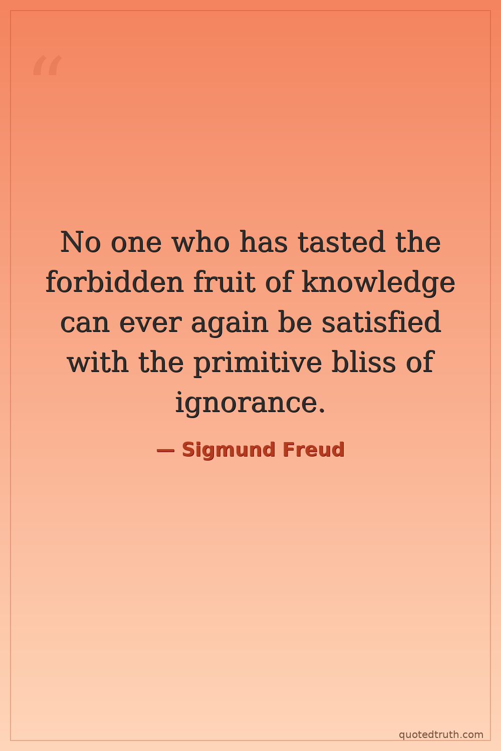 No one who has tasted the forbidden fruit of knowledge can ever again be satisfied with the primitive bliss of ignorance.
