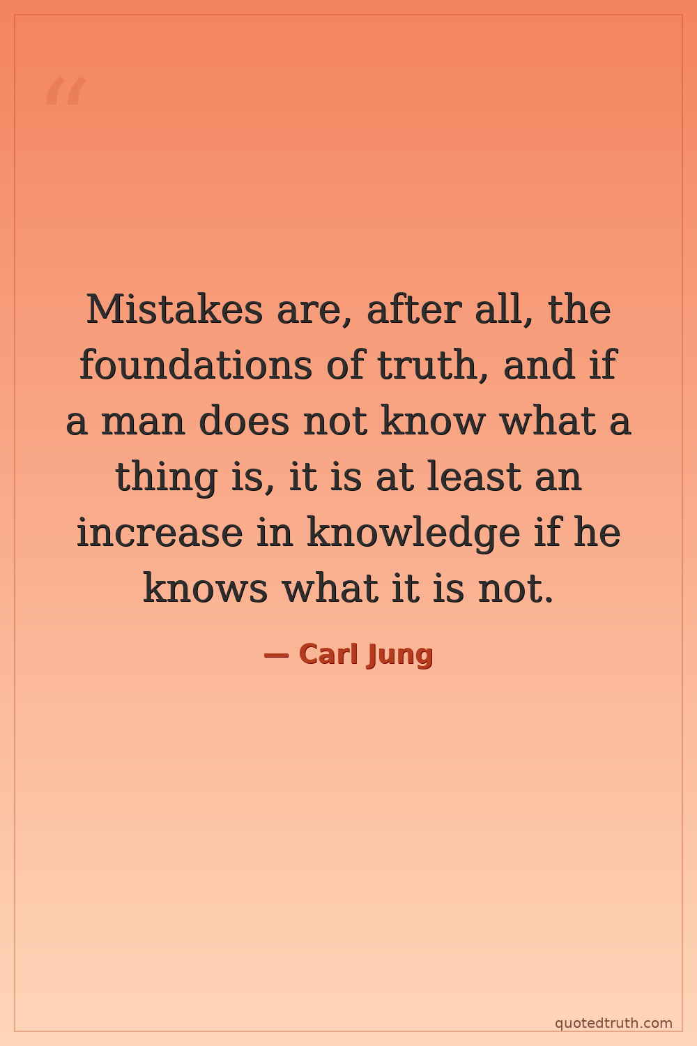 Mistakes are, after all, the foundations of truth, and if a man does not know what a thing is, it is at least an increase in knowledge if he knows what it is not.