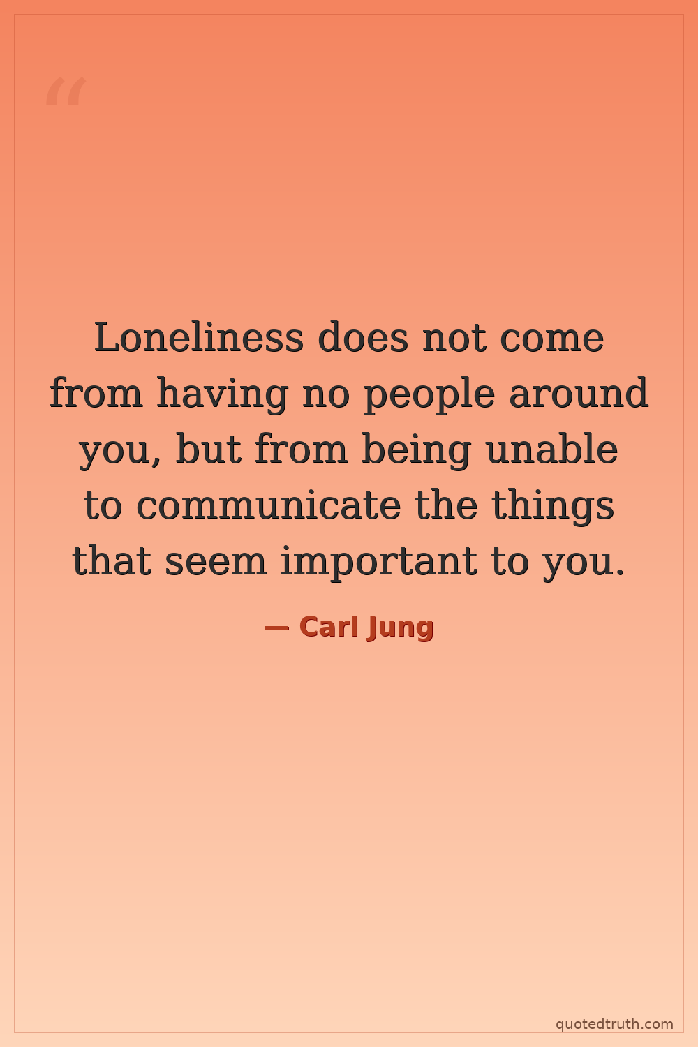 Loneliness does not come from having no people around you, but from being unable to communicate the things that seem important to you.