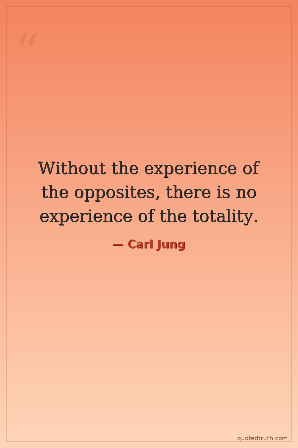 Without the experience of the opposites, there is no experience of the totality.