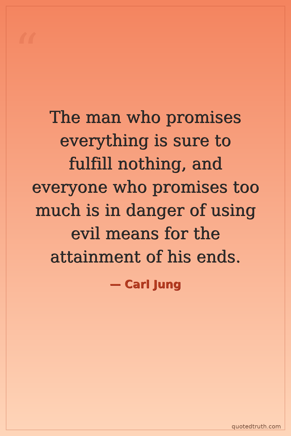 The man who promises everything is sure to fulfill nothing, and everyone who promises too much is in danger of using evil means for the attainment of his ends.