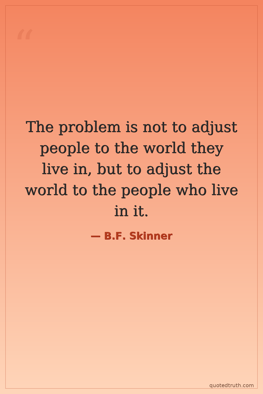 The problem is not to adjust people to the world they live in, but to adjust the world to the people who live in it.